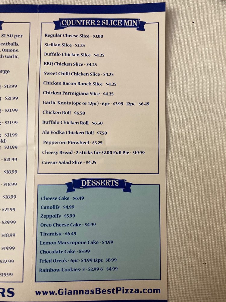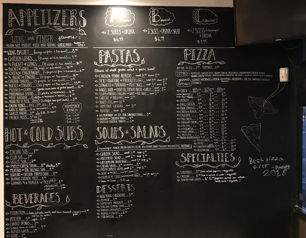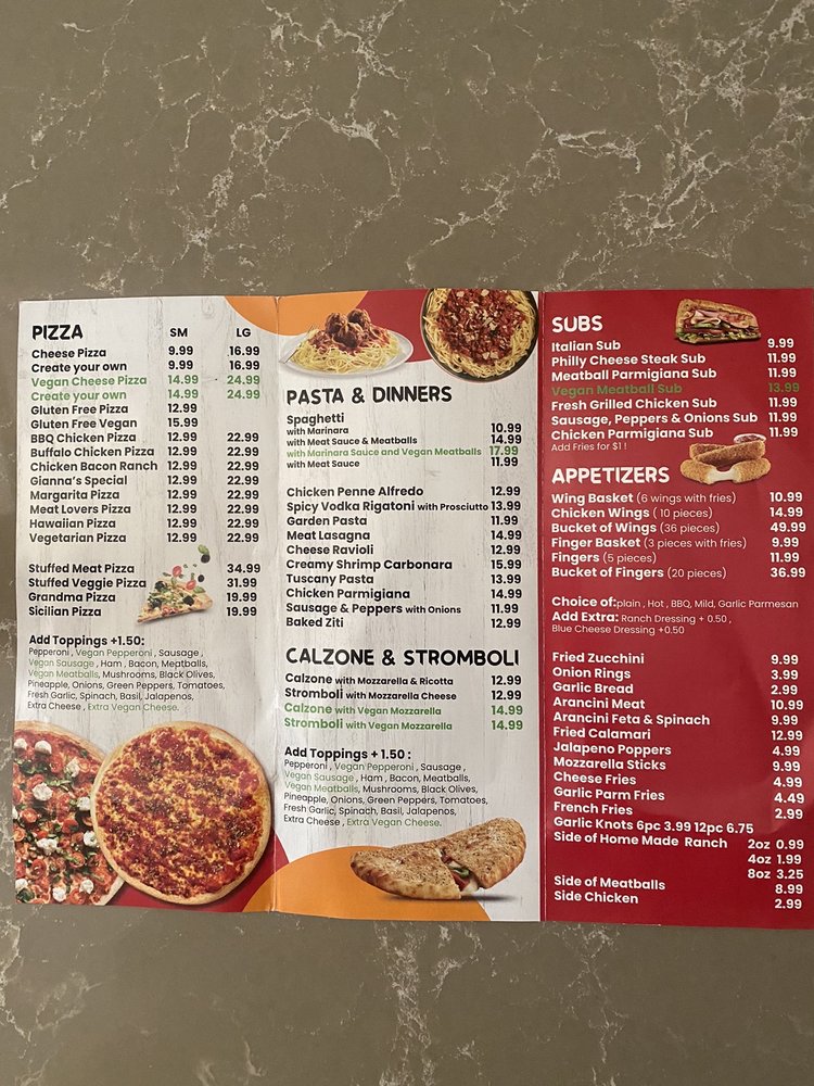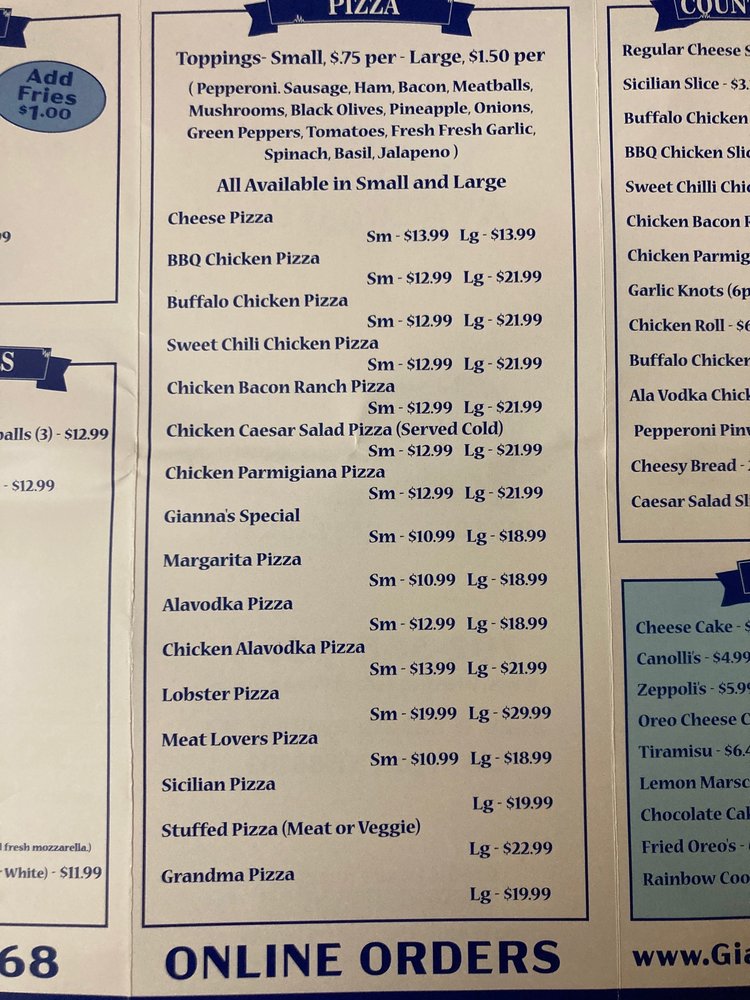 Gianna’s Pizza Menu