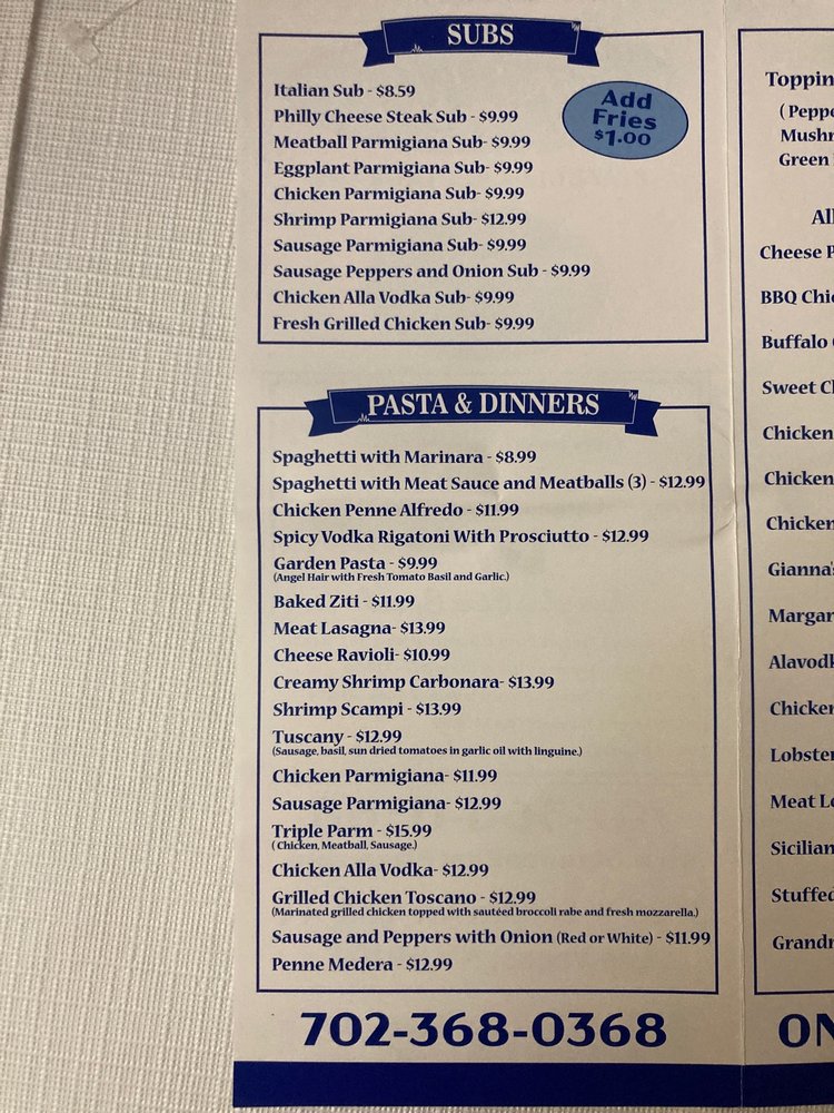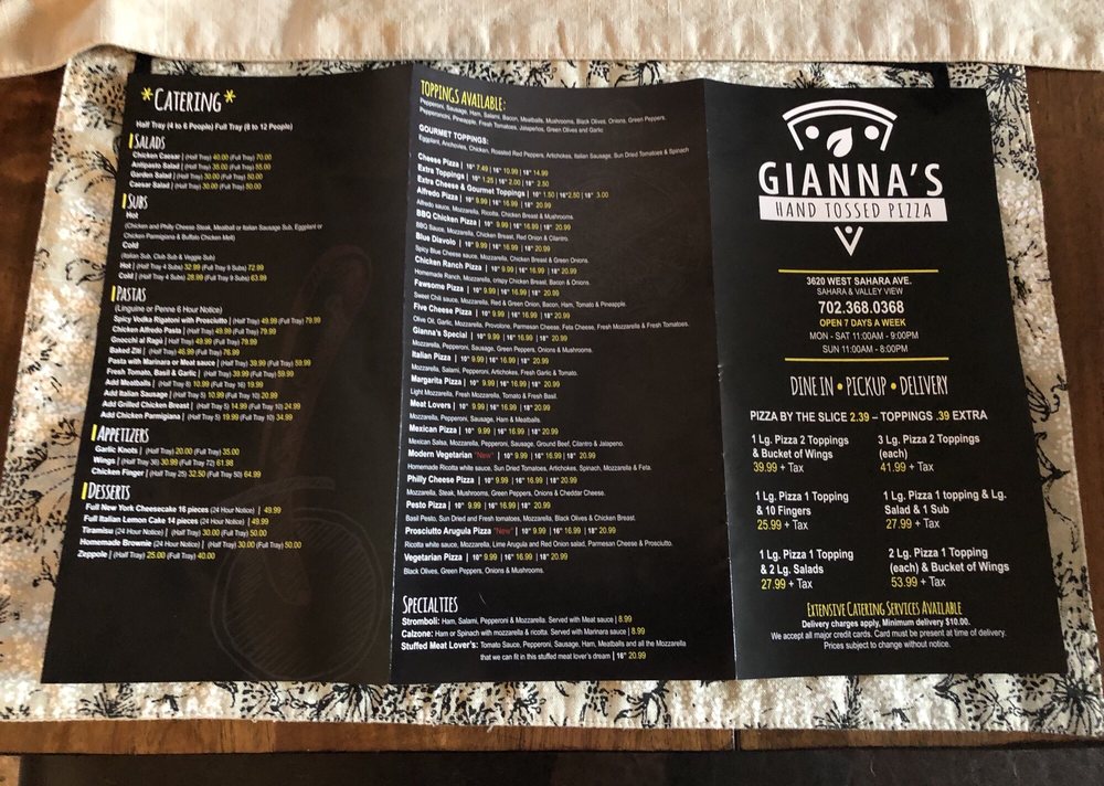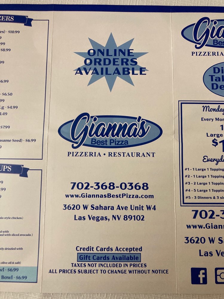 Welcome to Gianna’s Pizza, a delightful culinary gem nestled at 3620 W Sahara Ave in Las Vegas. This cozy eatery specializes in a tantalizing array of salads, pizzas, and sandwiches, embodying authentic Italian flavors and a warm atmosphere. Customers rave about the New York-style pizza, especially the pepperoni and sausage varieties, which have garnered enthusiastic praise for their rich taste and perfect crust.
